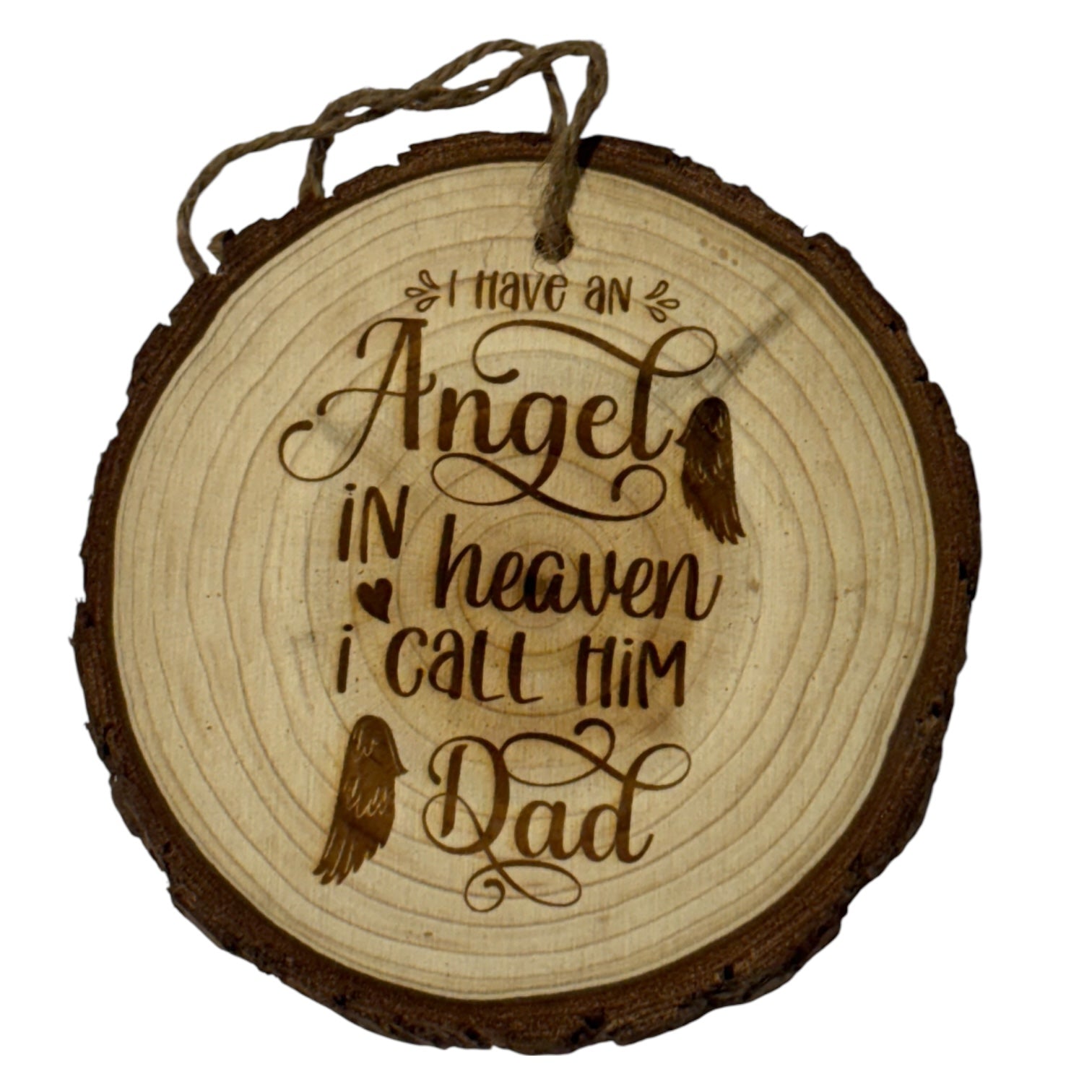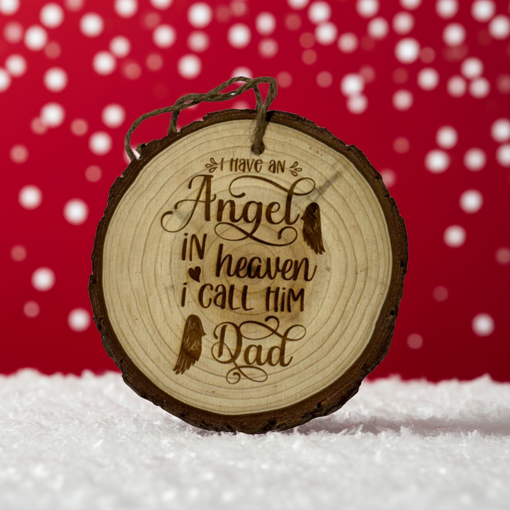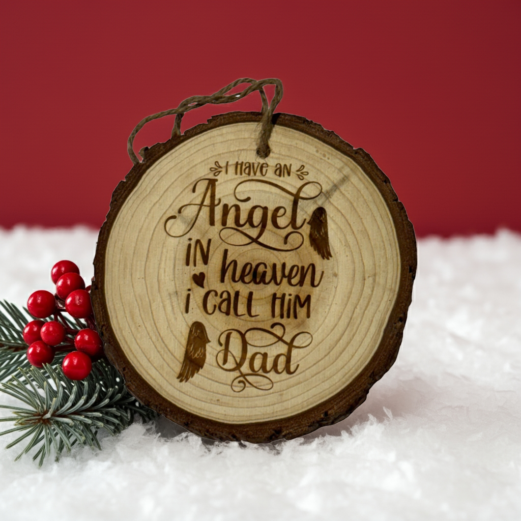 Dad Memorial Christmas Ornament – Angel in Heaven Engraved Wood Slice Keepsake (Personalized 3–4”)