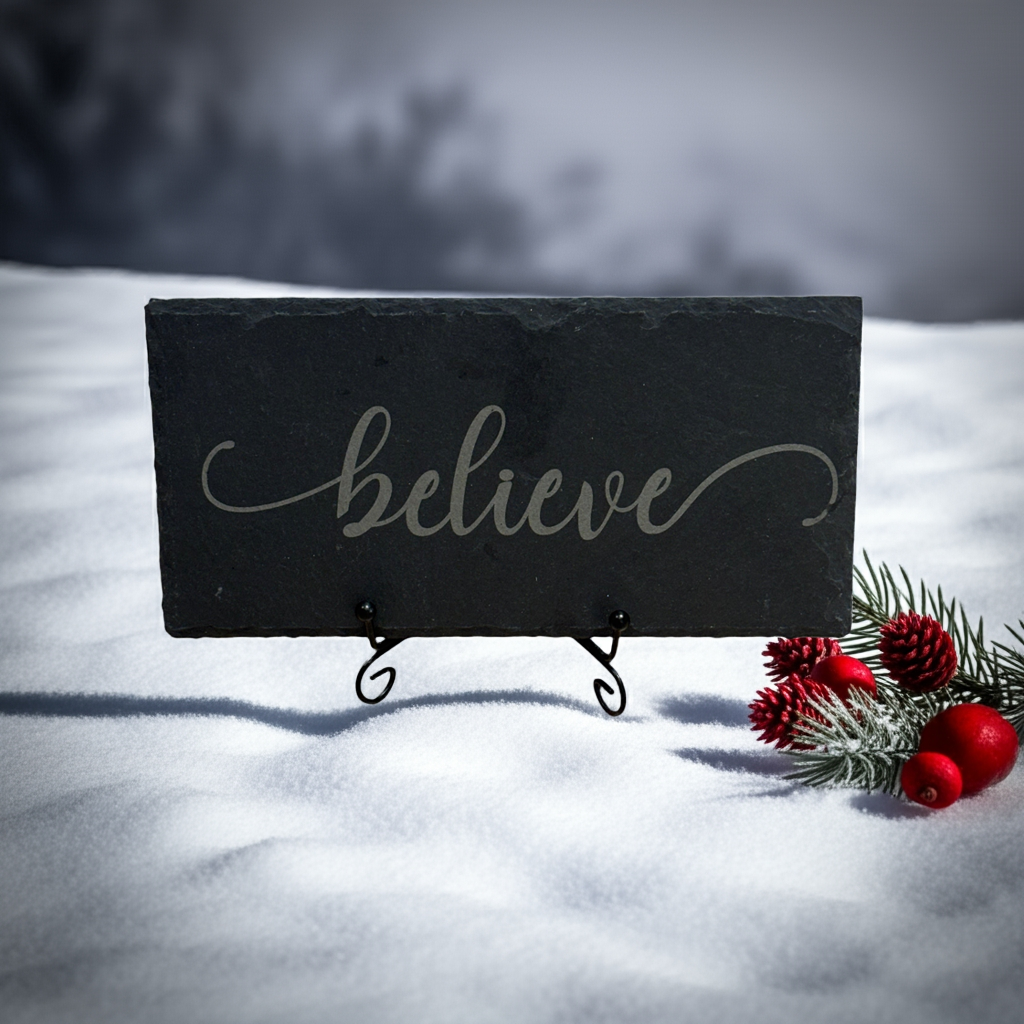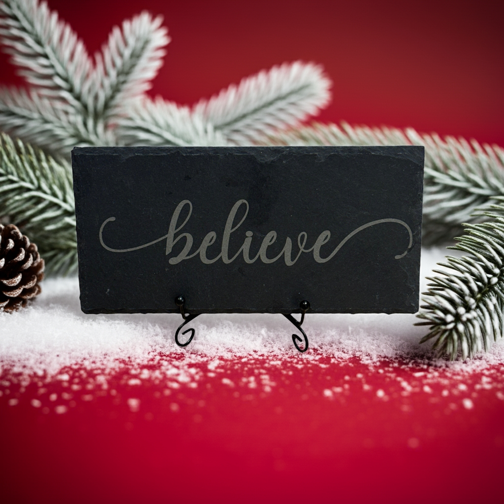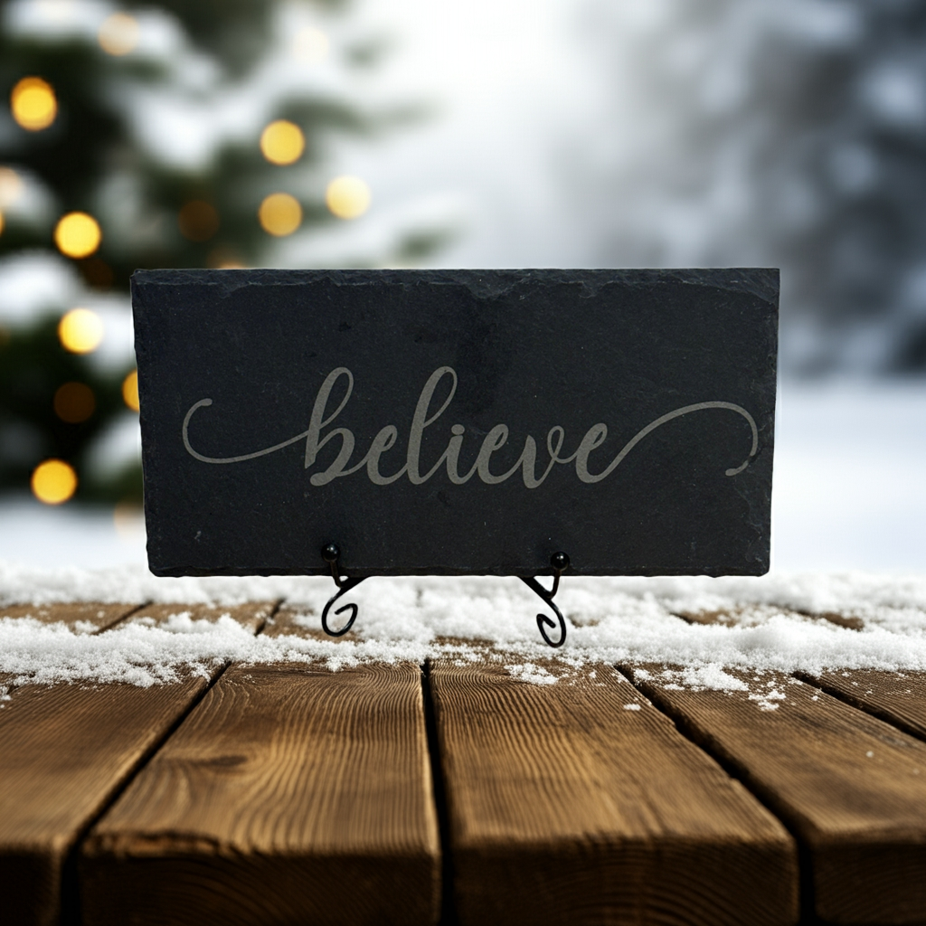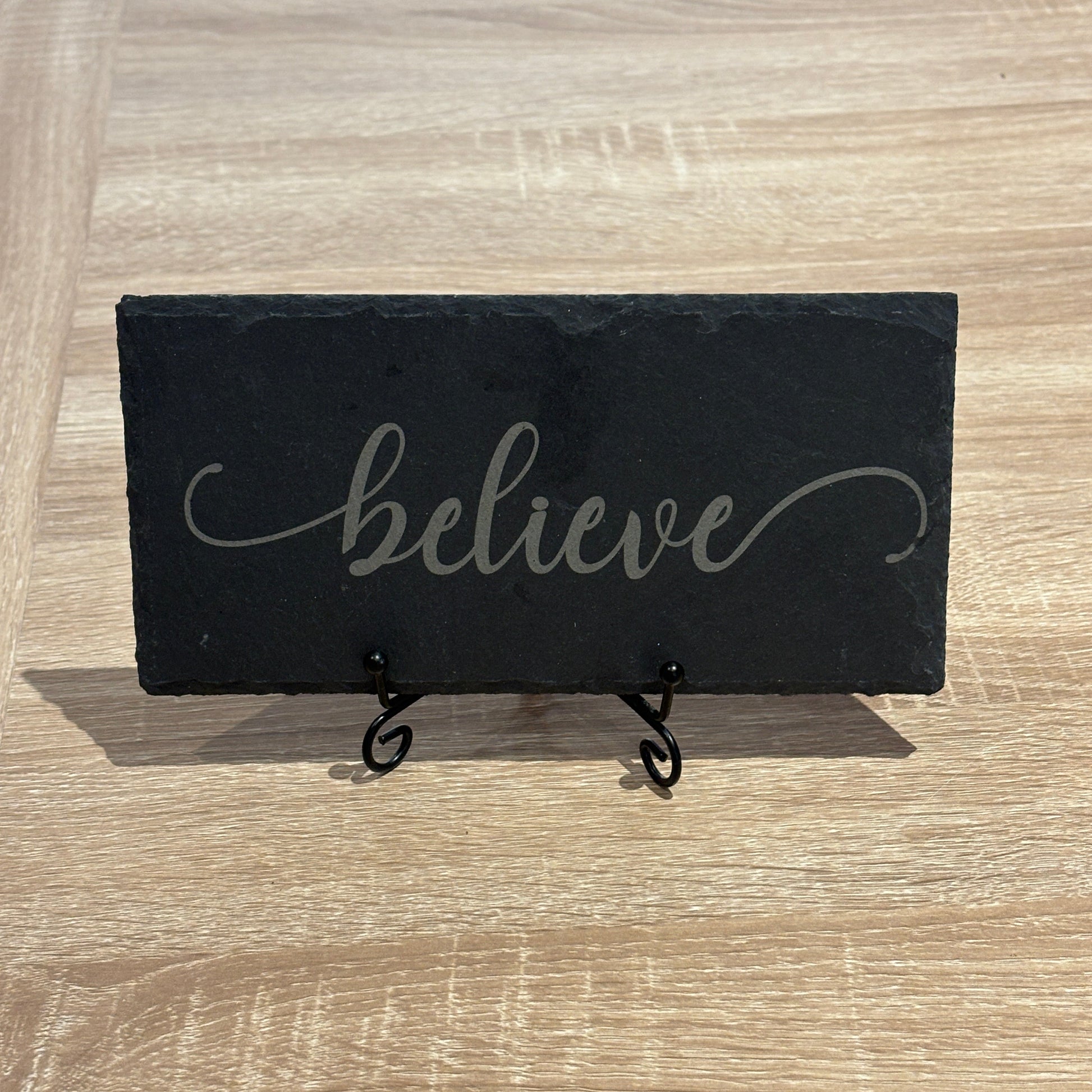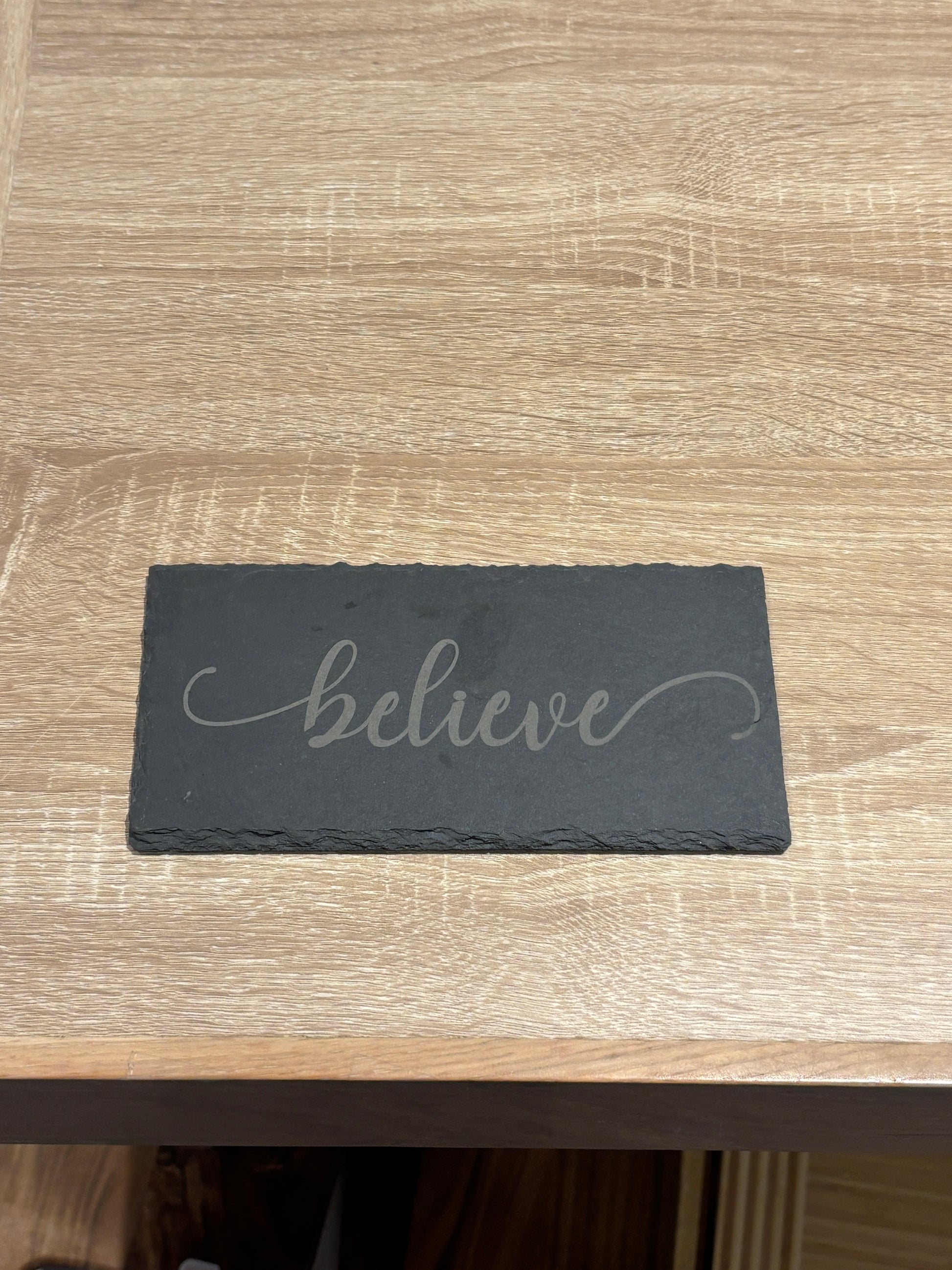 Engraved Slate Sign – “Believe” | Inspirational 8x4 Tabletop Décor