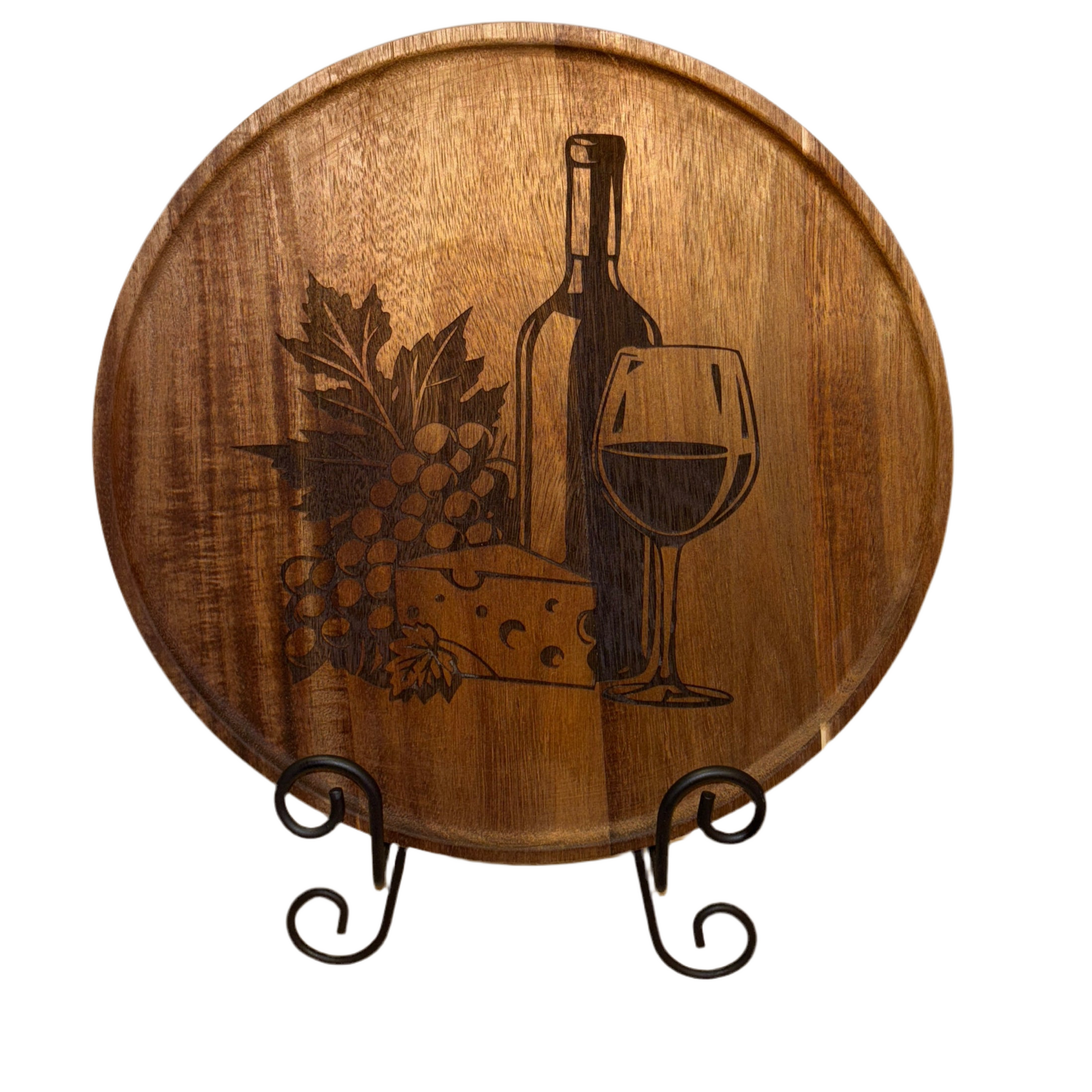 Engraved Wine & Cheese Board – 11.5” Round Acacia Tray | Elegant Charcuterie Decor
