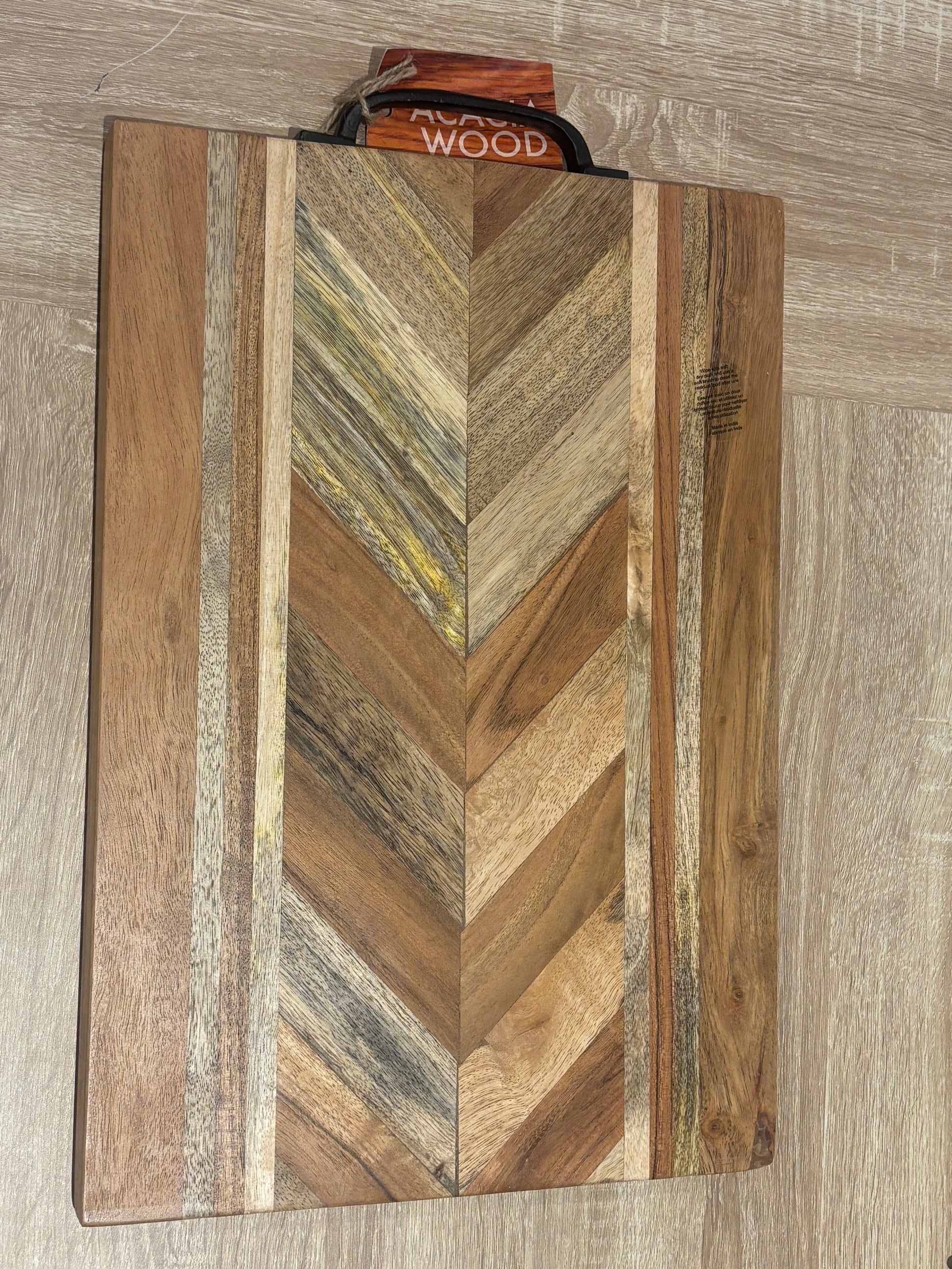 Herringbone Acacia Charcuterie Board – 18x12.5” | Luxe Patterned Serving Tray With Handle