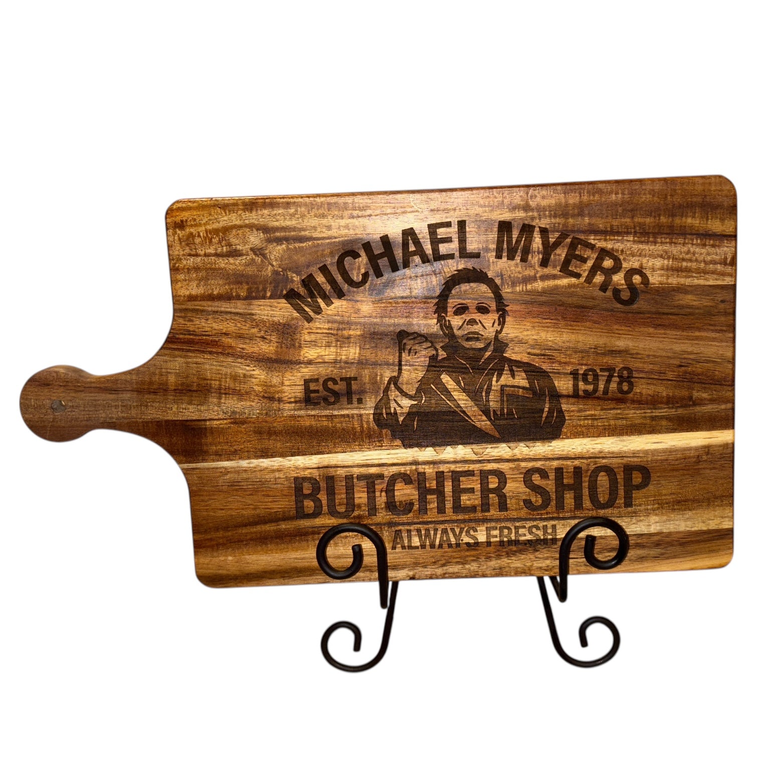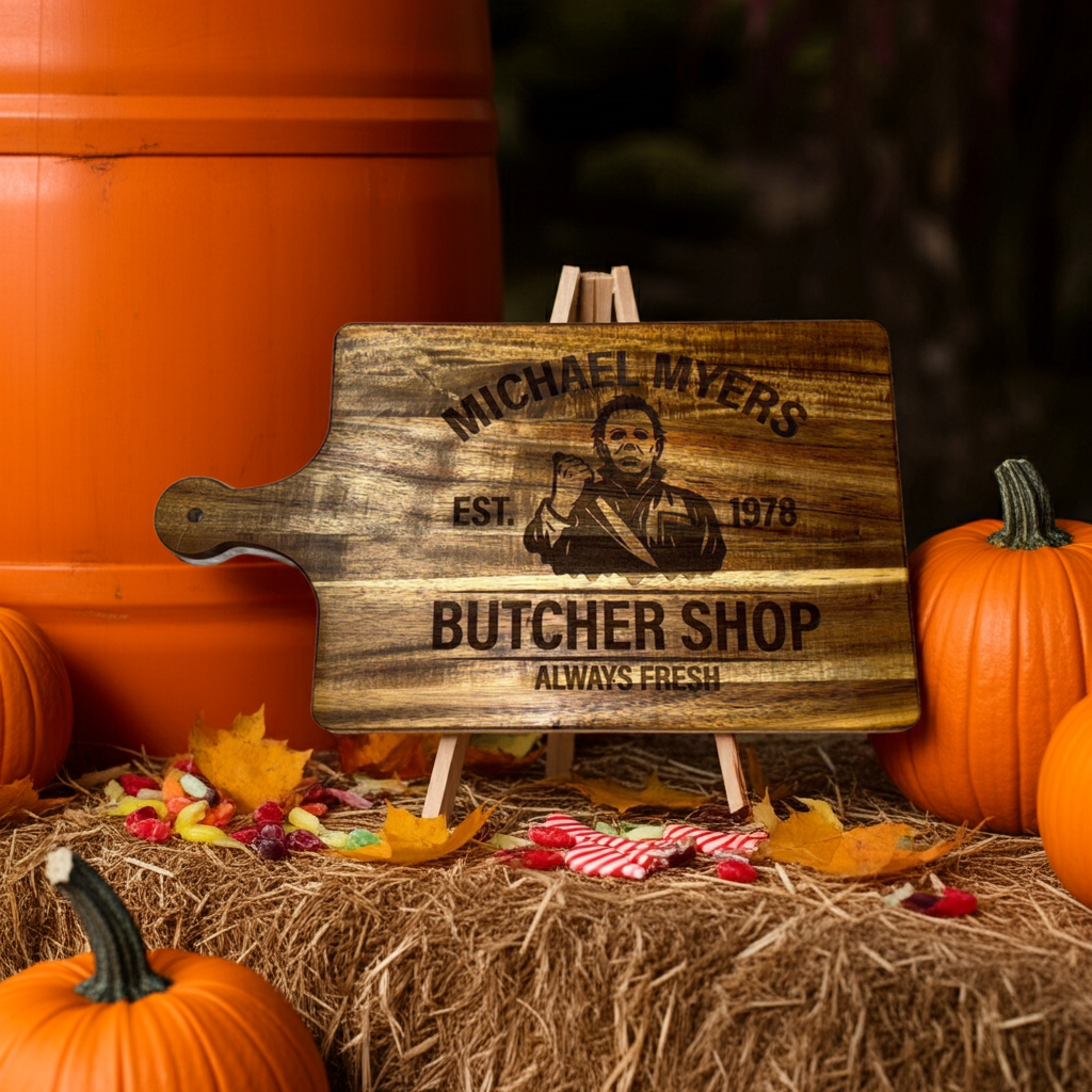 Michael Myers “Butcher Shop” Engraved Board – 16” x 9” | Halloween Kitchen Decor, Horror Fan Gift