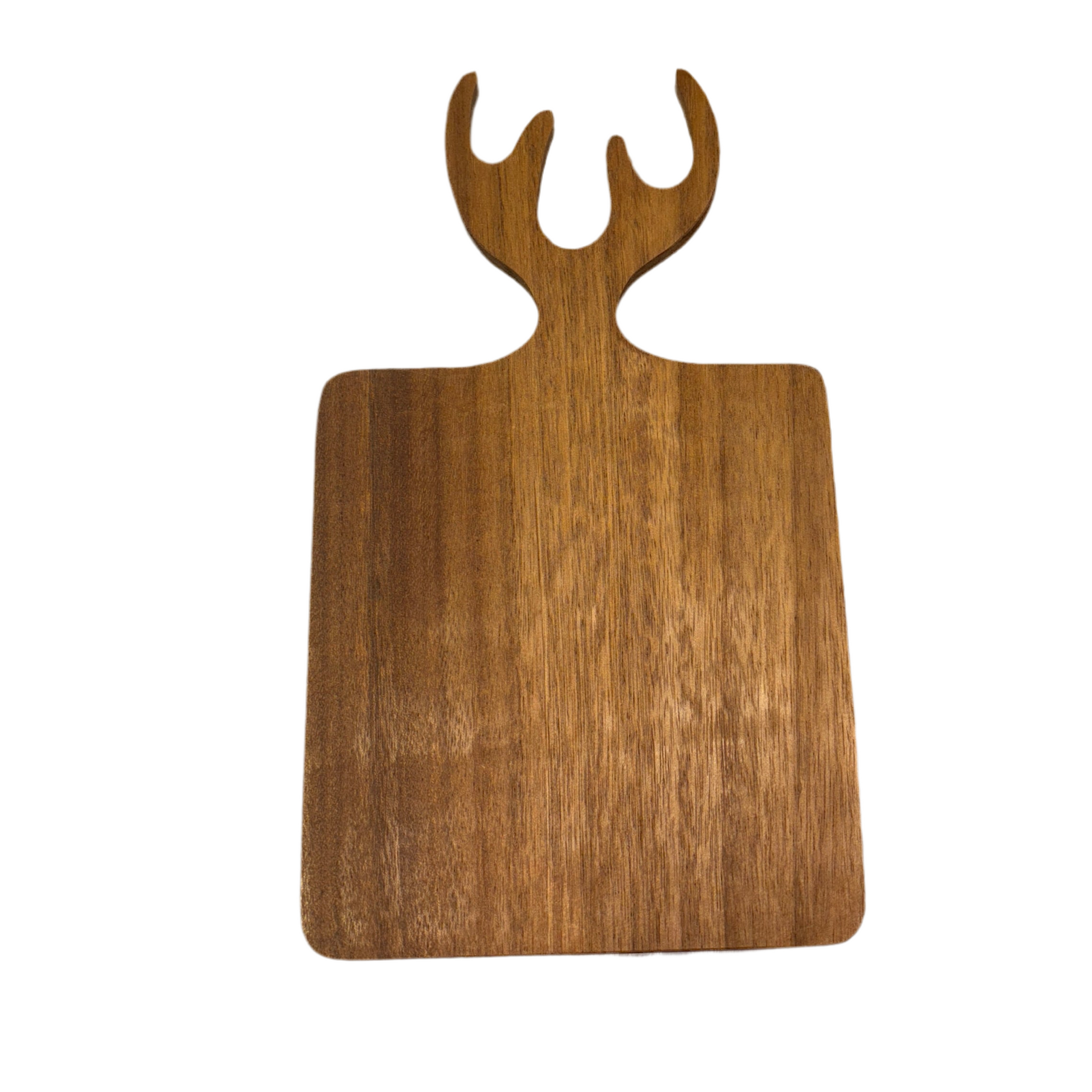 This eye-catching cutting board features a bold antler-shaped handle and a smooth, richly toned wood surface — ideal for rustic kitchens, cabin decor, or one-of-a-kind gift giving.
