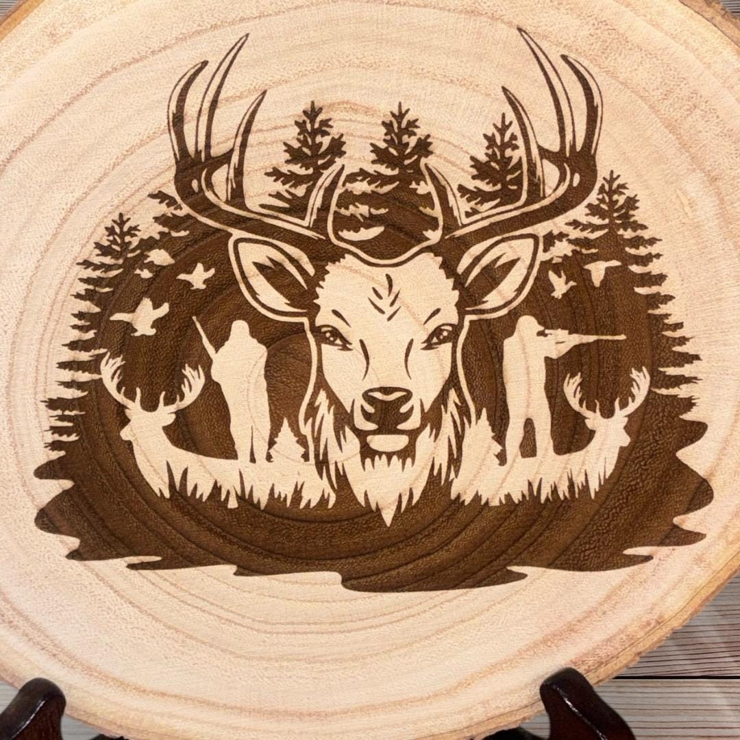 Add a rustic focal point to your home or gift someone who feels at home in the woods. These engraved deer wood slices are a little wild, a little woodsy — and completely unforgettable.