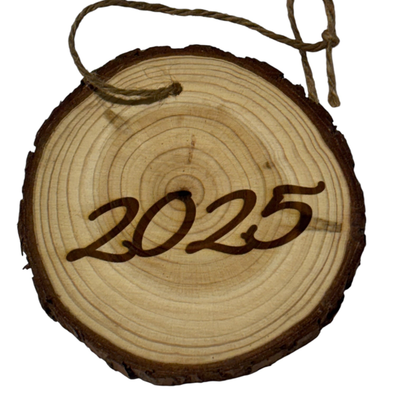 Each ornament is one-of-a-kind with wood grain and bark edge variations that make it extra special.