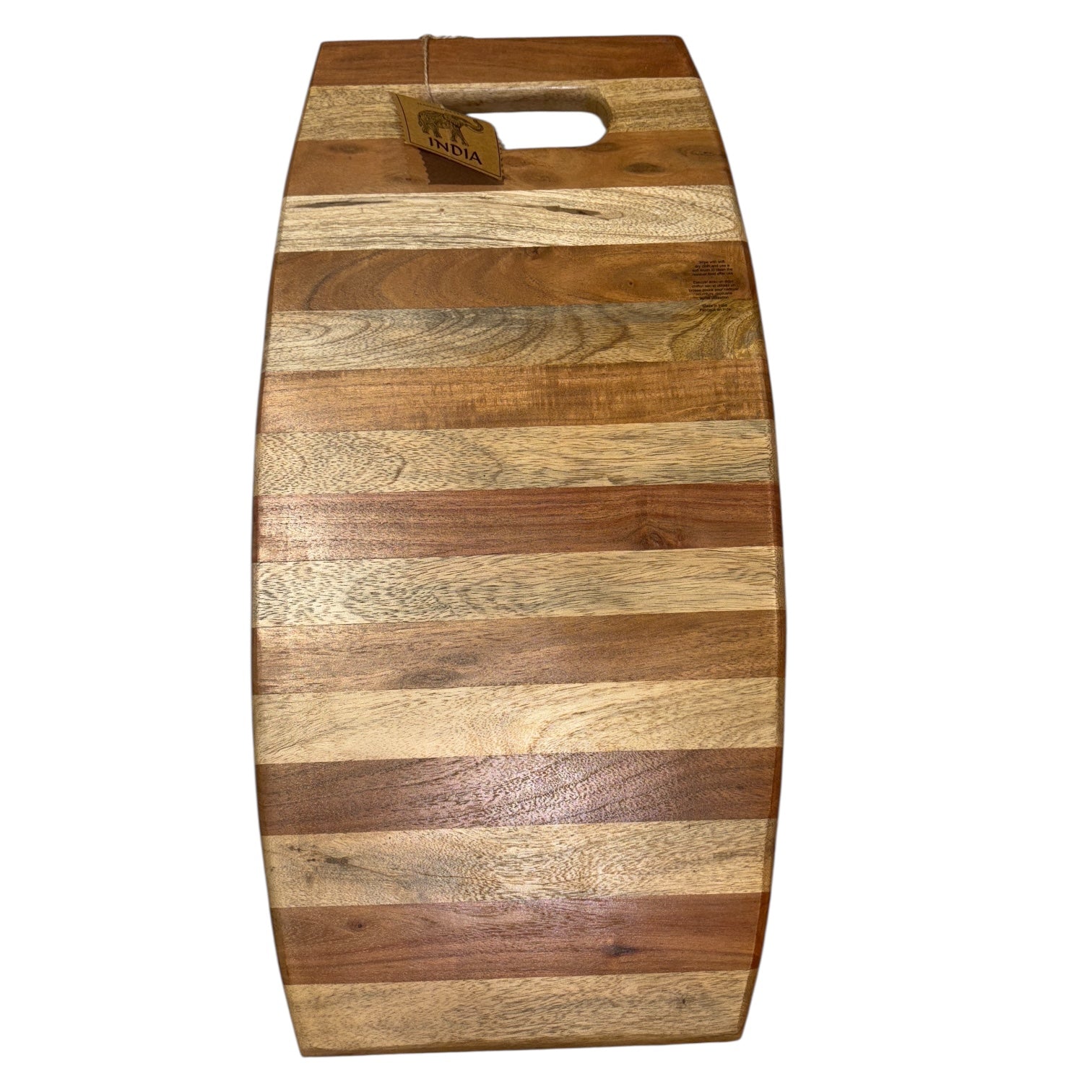 Crafted from richly striped acacia wood with a graceful curve and easy-carry handle, this charcuterie board isn’t just a serving piece — it’s a canvas.